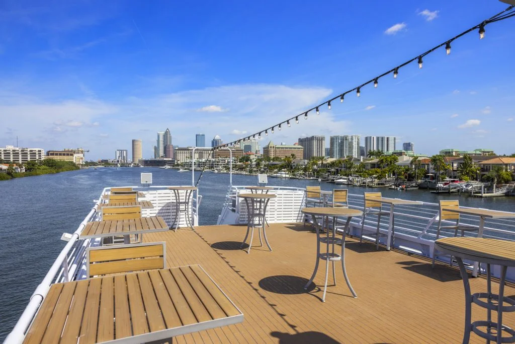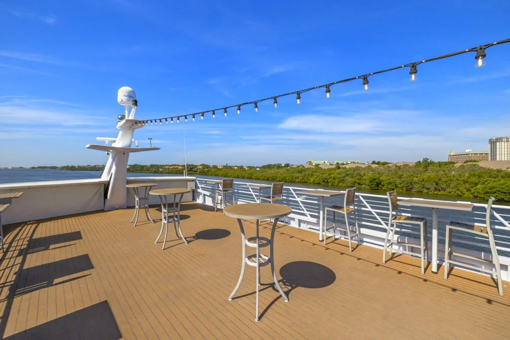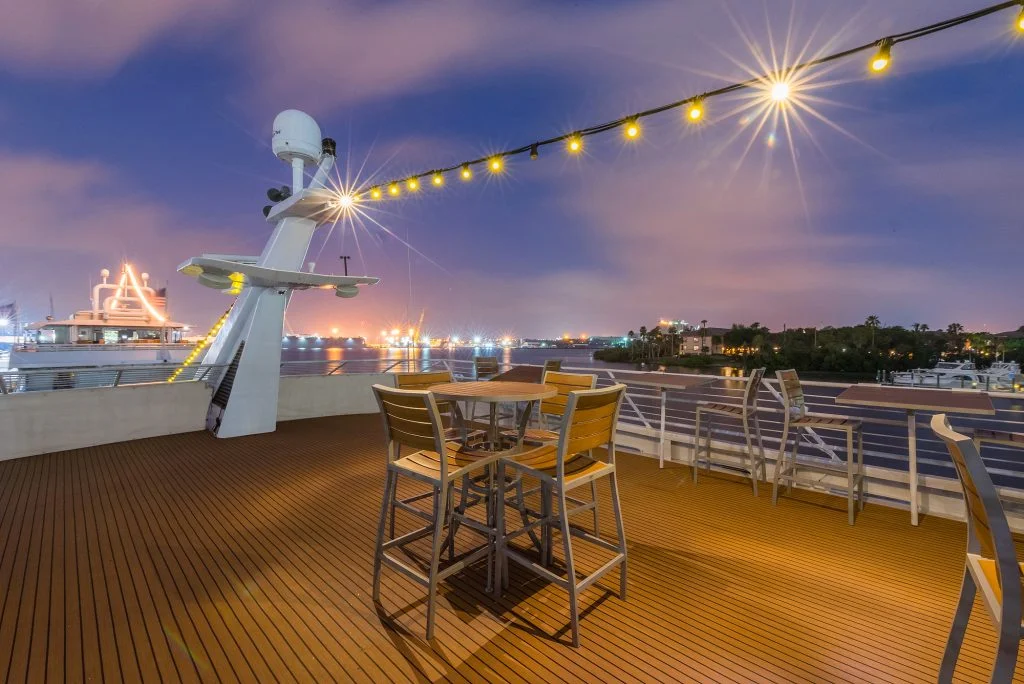 Florida’s largest 150-passenger dining yacht! At 130 feet this exquisite yacht has three decks, a main dining room, lounge deck and Promenade deck.