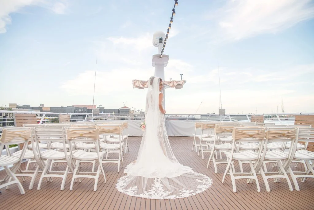 Ceremonies for 125 (119 guests) on the Promenade deck, bridal suite, lounge deck and main dining room make this yacht ideal for wedding parties of 125 passengers or less.